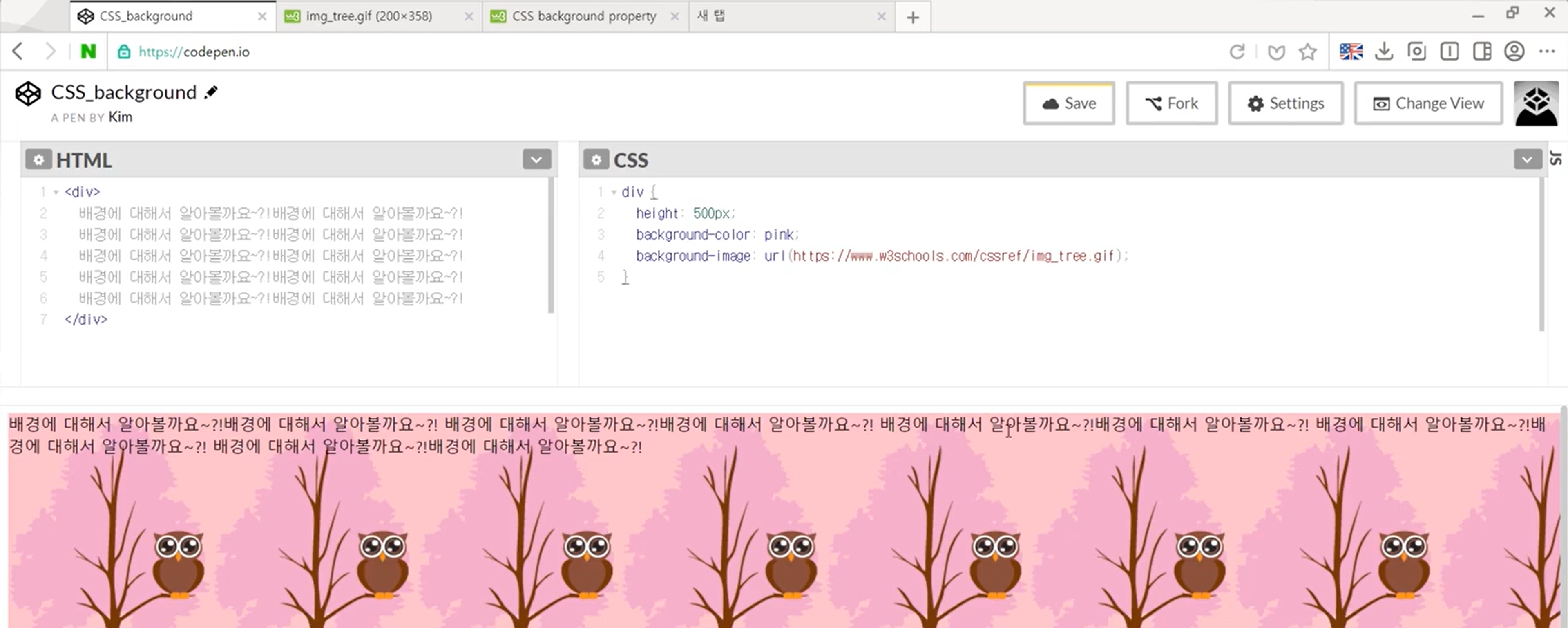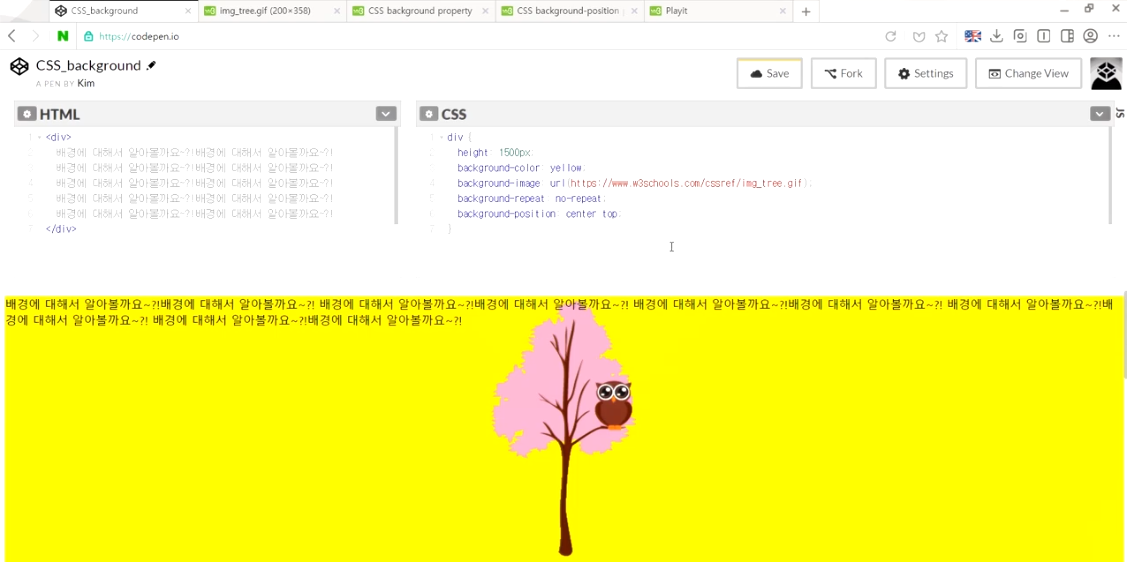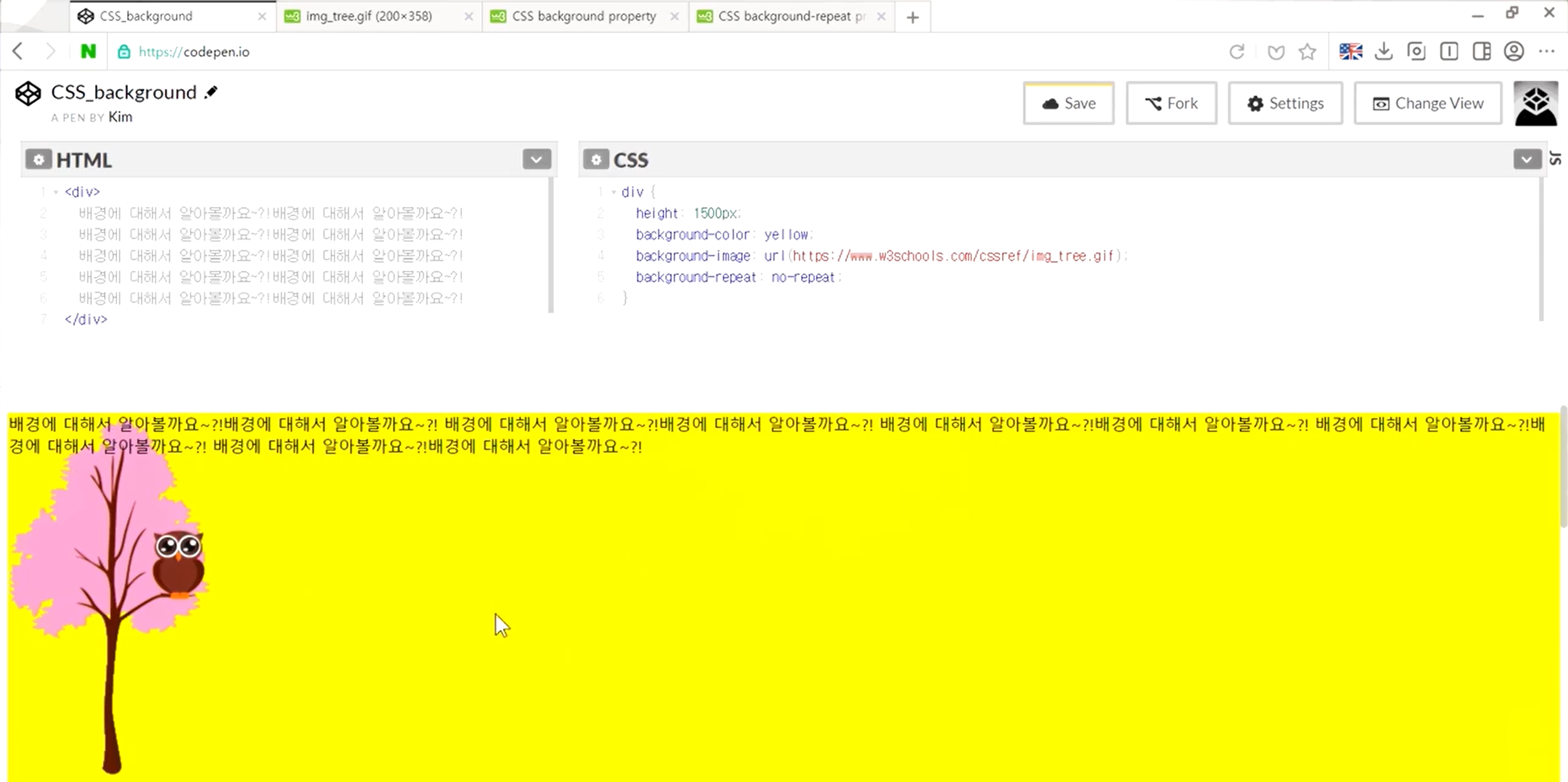 배경에 관련된 속성에는 색상, 이미지, 반복 여부 등 여러 속성이 존재하고,