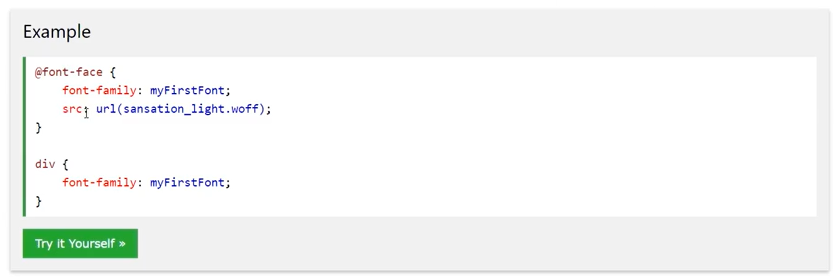 웹에 있는 글꼴을 사용자의 로컬 환경(컴퓨터)으로 다운로드하여 적용하는 속성입니다.