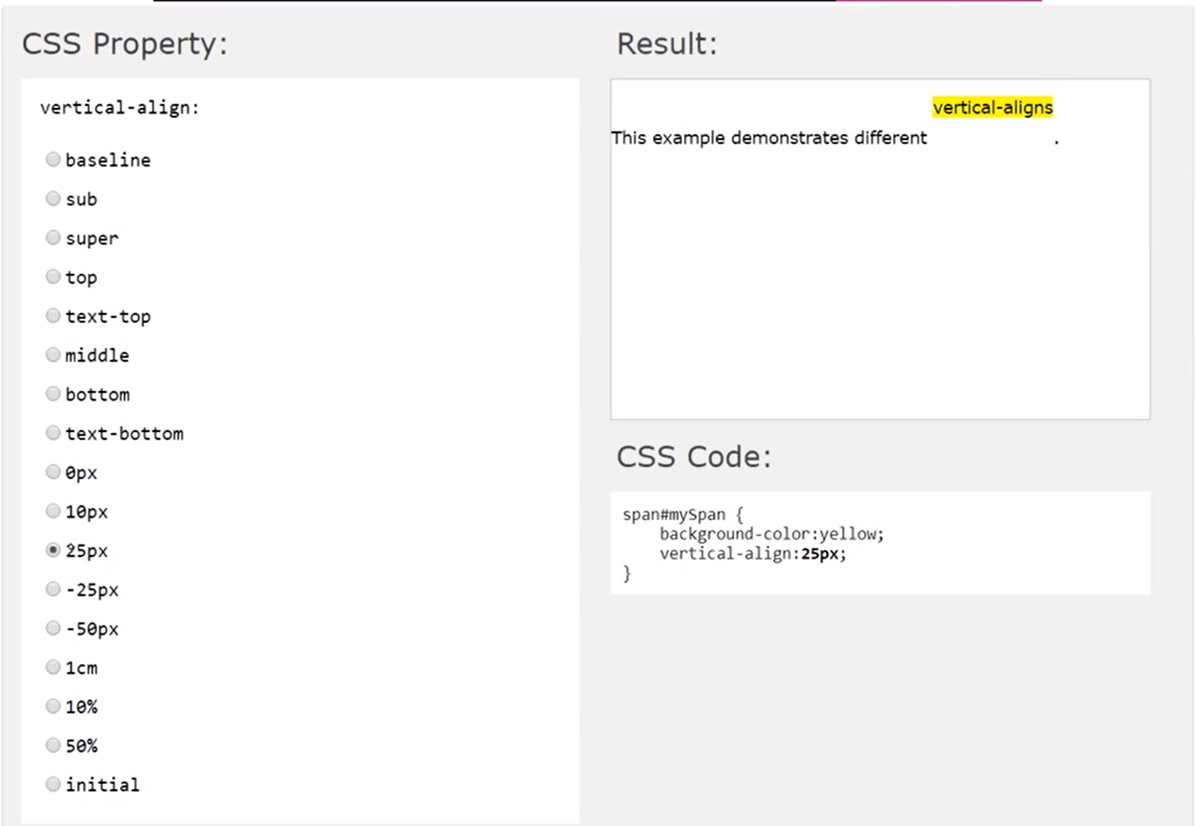 vertical-align: keyword | length | percent | initial | inherit ;