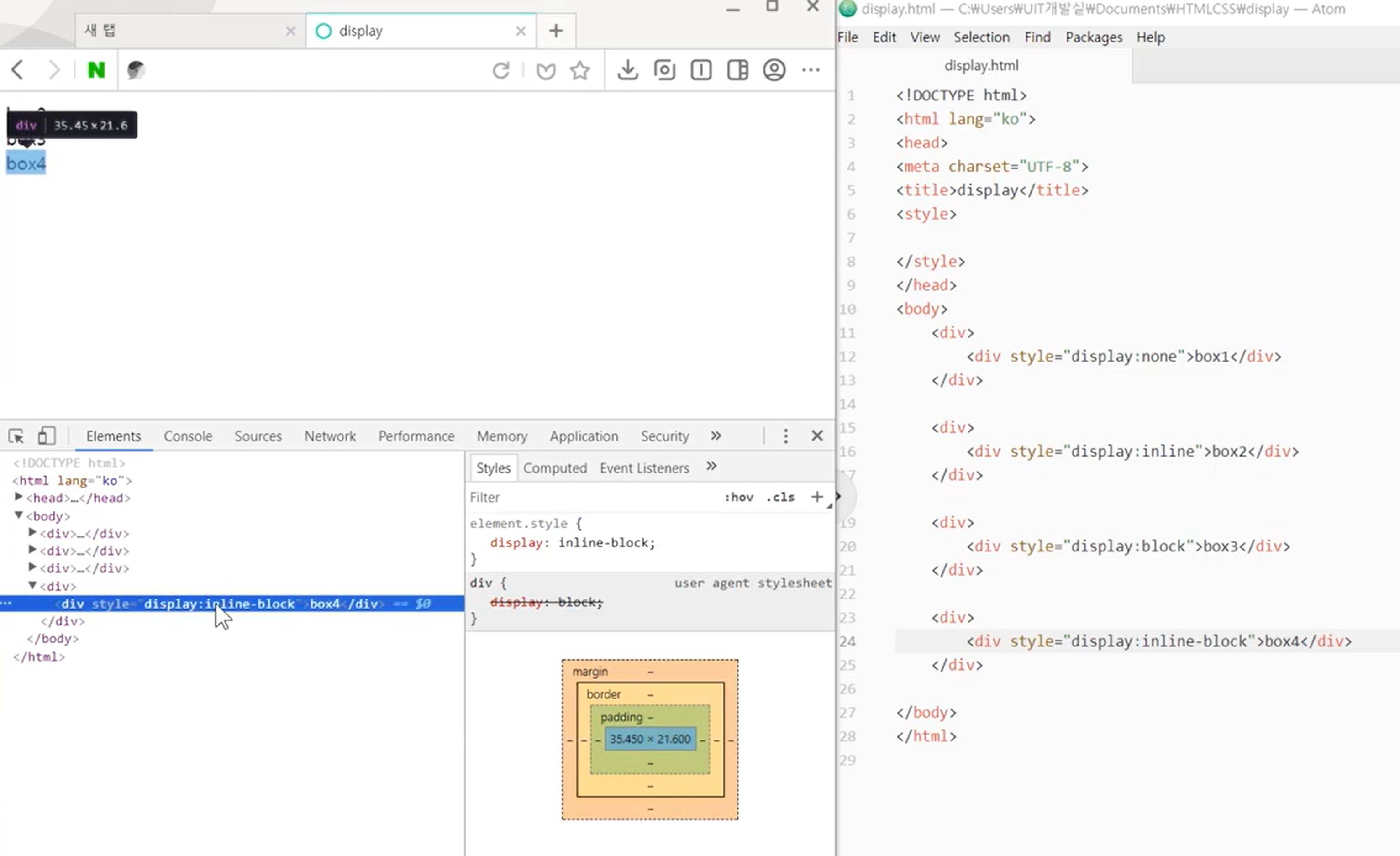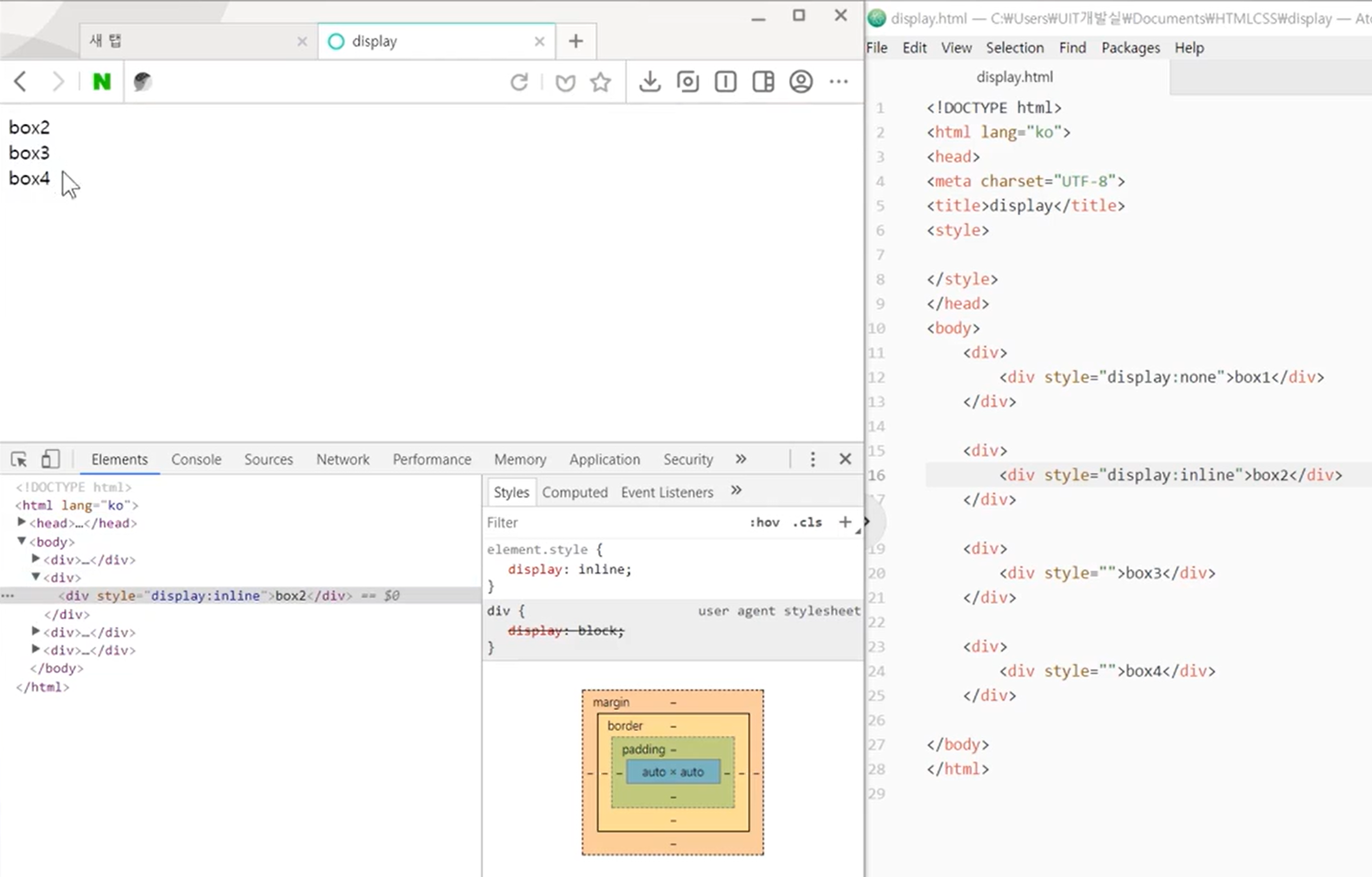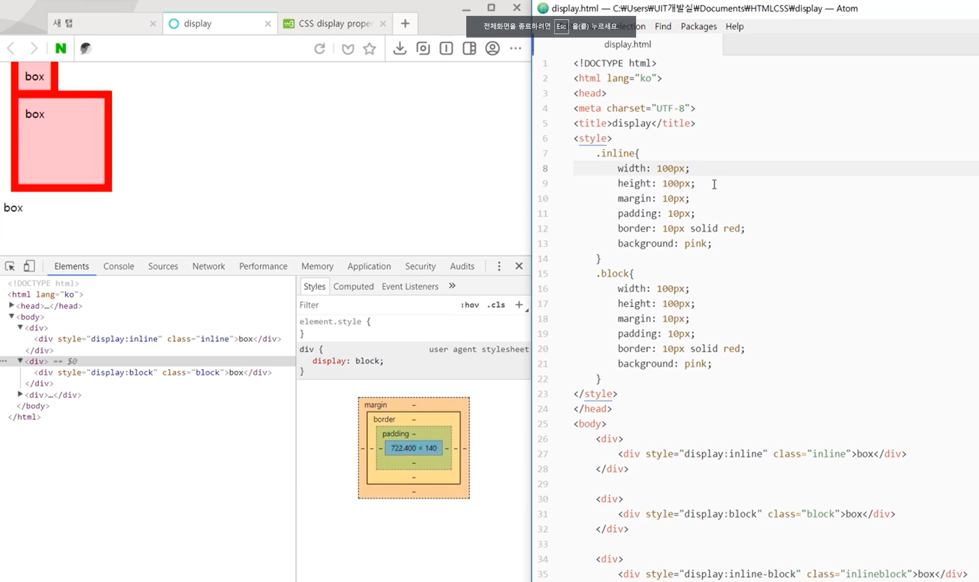 모든 요소는 자기가 기본적으로 가지고 있는 display 값이 있습니다.