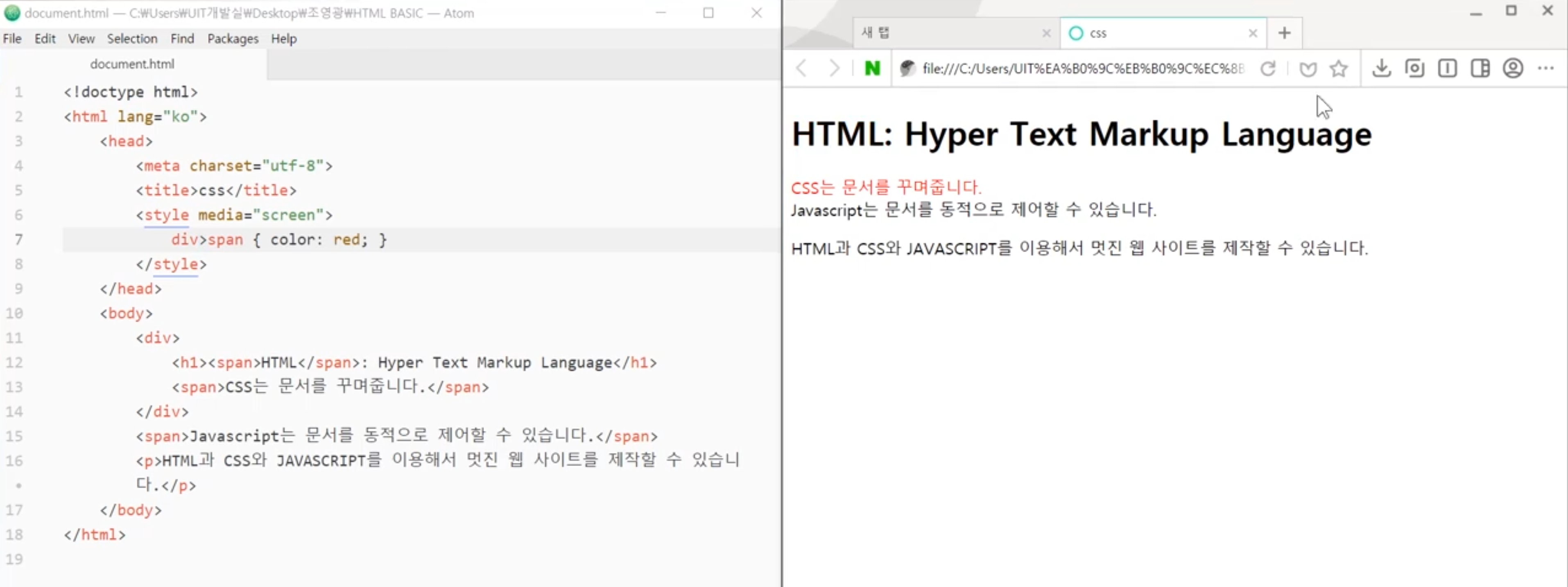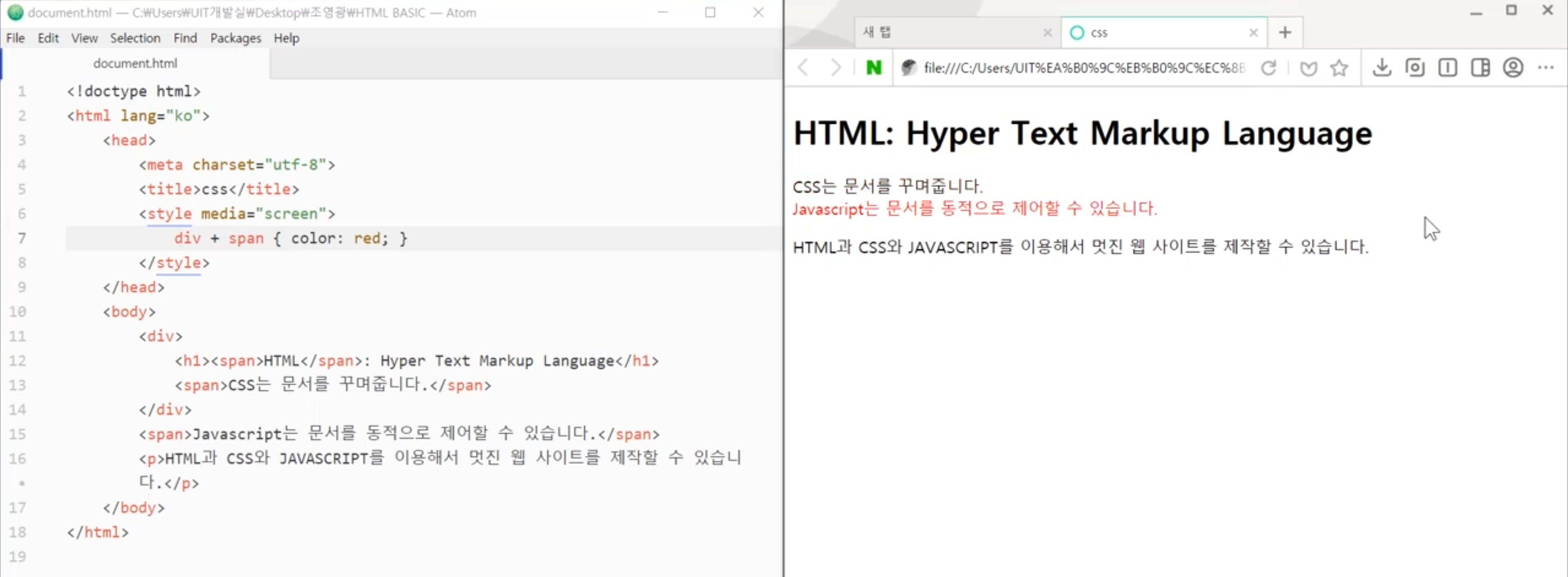 - <span>의 부모 요소: <h1> ↔ <h1>의 자식 요소: <span>