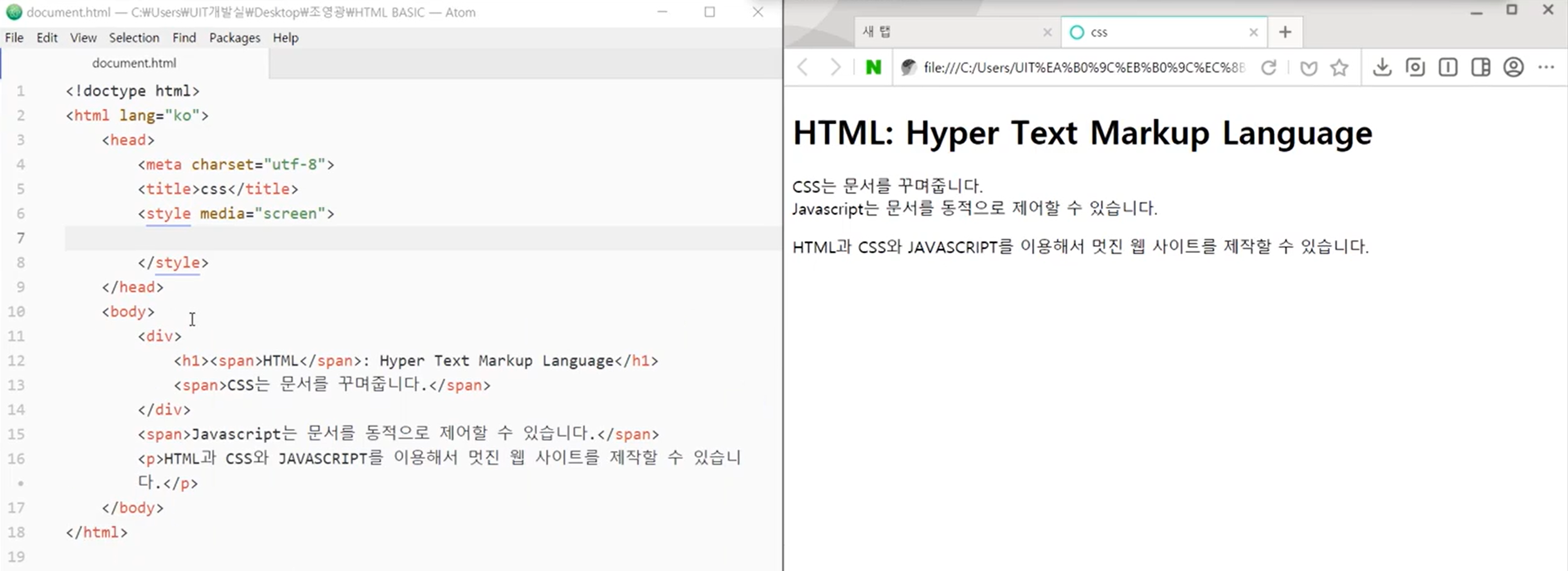 <p>HTML과 CSS와 JAVASCRIPT를 이용해서 멋진 웹 사이트를 제작할 수 있습니다.</p>