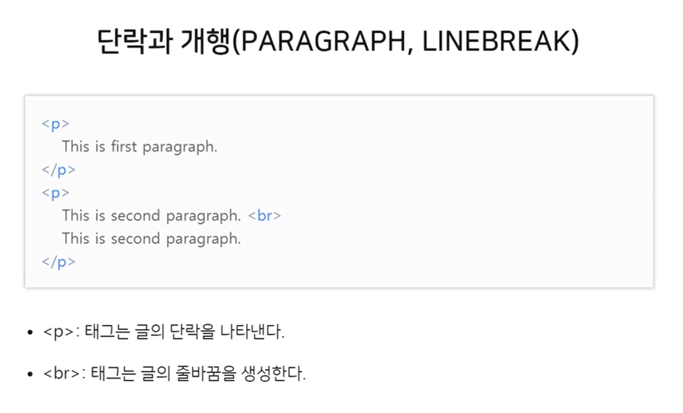 단락(paragraph) 태그는 paragraph를 줄여서 p로 씁니다.