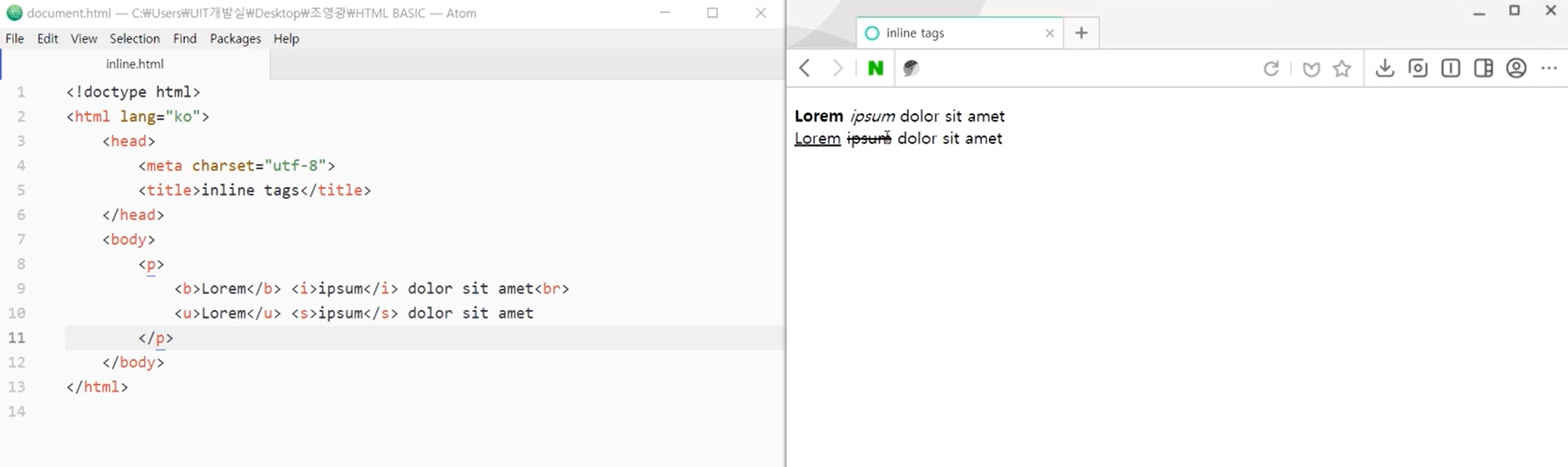 (예전에 존재했던 strike 태그와는 다른 태그로, strike 태그는 폐기되어 더는 사용할 수 없습니다.) - <i>